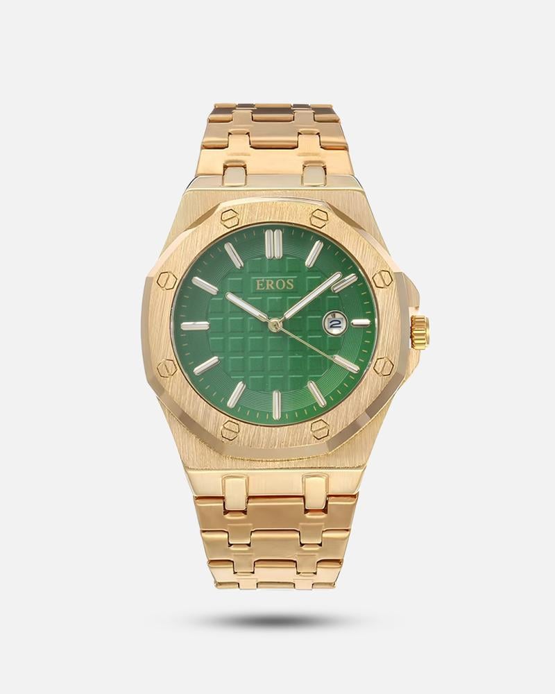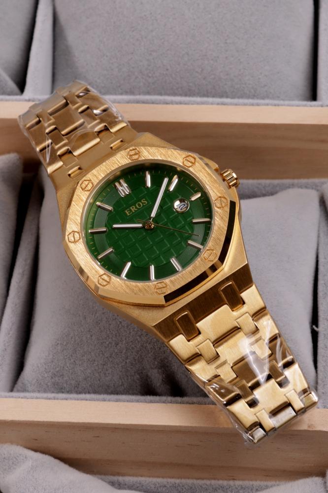 نوع المنتج: ساعة رجالية شبيهة اوديمارس بيجيه باللون الذهبي والاخضر