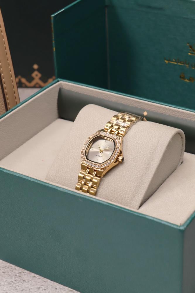 - ساعة نسائية أنيقة ستيل بلون ذهبي ميناء رمادي