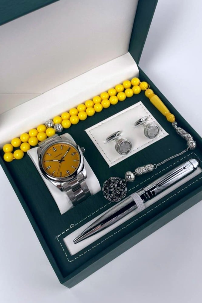 اشتري الحين افخم طقم ساعات واحصل على طقم رجالي ساعة فضي مع مسباح بكلايت كركمي وقلم هو الخيار المثالي لك، اجعل إطلالتك أنيقة ومميزة مع هذا الطقم الرجالي، احصل عليه اليوم ولا تضيع الفرصة لامتلاك هذه القطع الفاخرة.