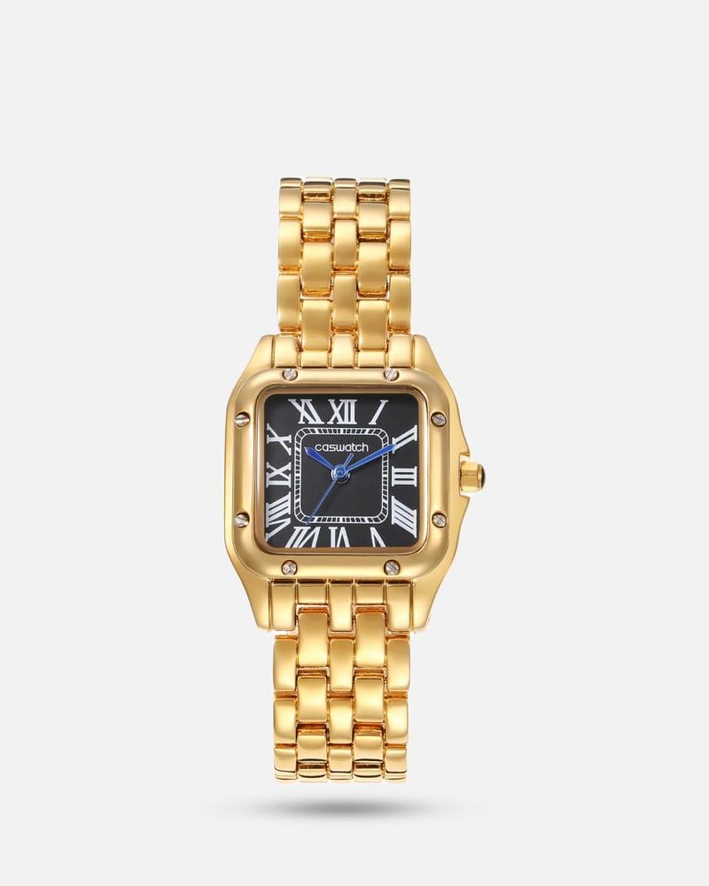 ساعة نسائية مربعة ذهبي ميناء أسود