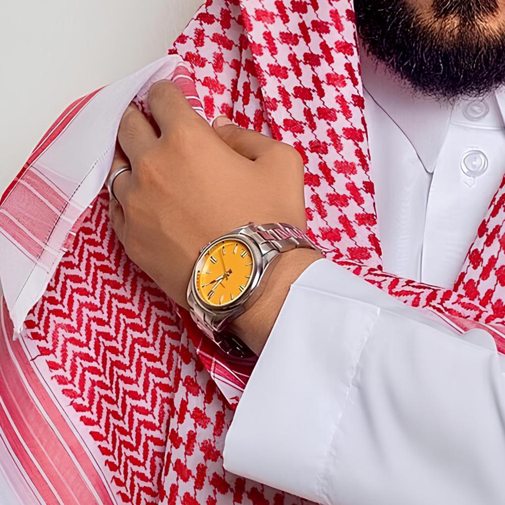 تتميز ساعة رجالية شبيهة رولكس باللون الفضي والأصفر بتصميم عصري مميز يجذب الأنظار، وبجودة عالية وضمان لمدة 3 سنوات . يتميز التصميم بإطار فضي مع أرقام رومانية ومؤشرات الوقت الفضية والصفراء، مما يعطي الساعة لمسة من الأناقة والرفاهية الباهرة. يمكن للرجال ارتداء هذه الساعة الفاخرة في مناسبات عديدة ومختلفة، وسوف تتألق على معصمهم في كل الأوقات.