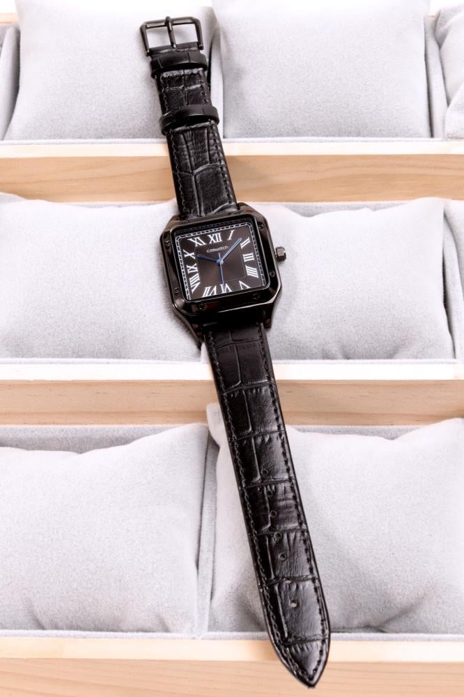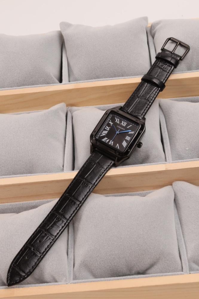 احصل على ساعة الجلد المربعة باللون الأسود الآن وأضف لمسة من الأناقة إلى إطلالتك اليومية.