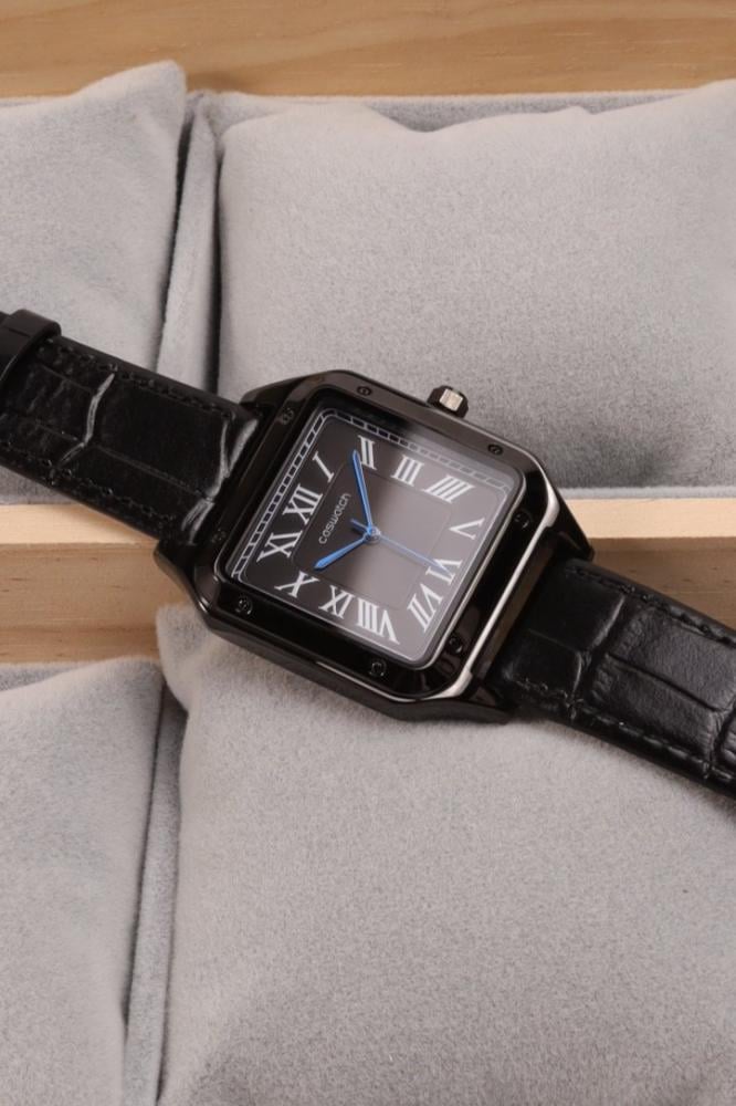 - نوع المنتج : ساعة جلد مربع بلون اسود