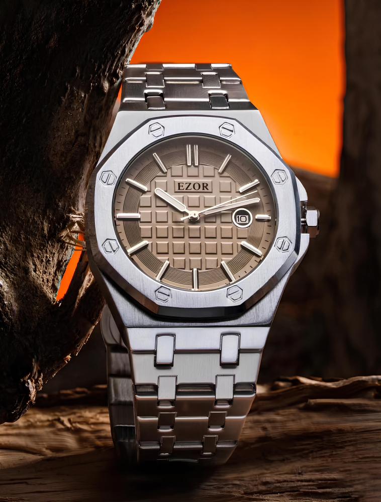 تمتع بأناقة وفخامة ساعة رجالية شبيهة بساعات اوديمارس باللون الفضي المميز. تتميز ساعات ستيل رجالي بتصميم عصري رائع يناسب جميع الأذواق، حيث تأتي بميناء راقي وحركة كوارتز متميزة. كما تتميز بسوار ستيل فضي مريح وتفاصيل بارزة أنيقة تزيد من جمالها، كما أنها مقاومة للماء والصدأ. احصل عليها الآن من متجرنا بتصميم كلاسيكي أنيق وضمان ذهبي لمزيد من الراحة.