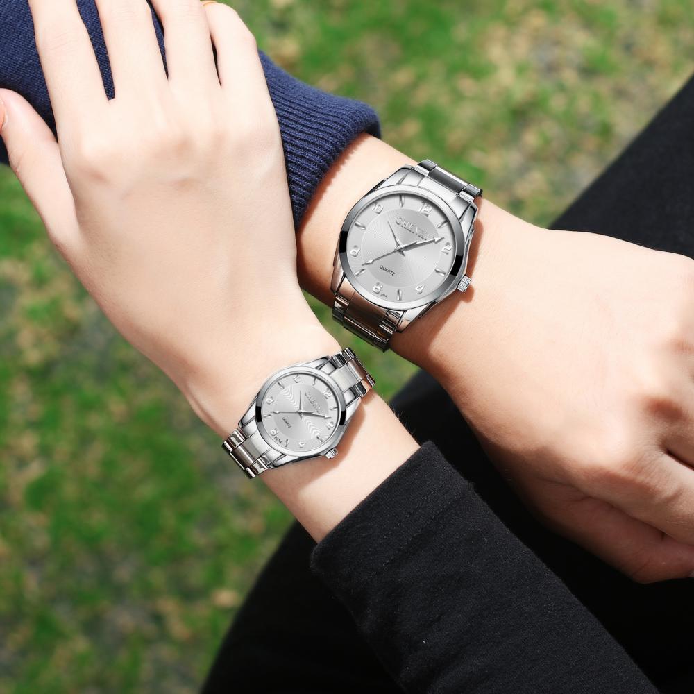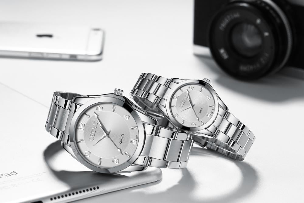 طقم ساعات الزوجين رجالية ونسائية باللون الفضي