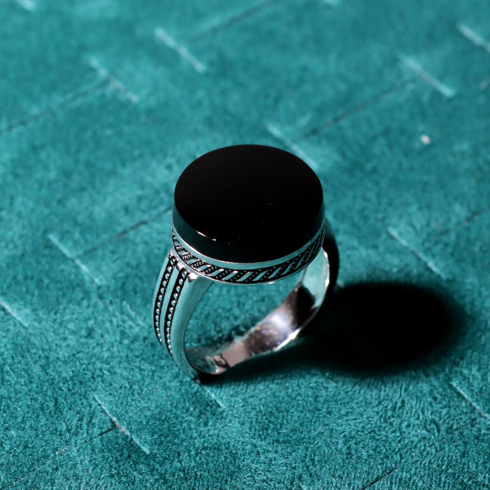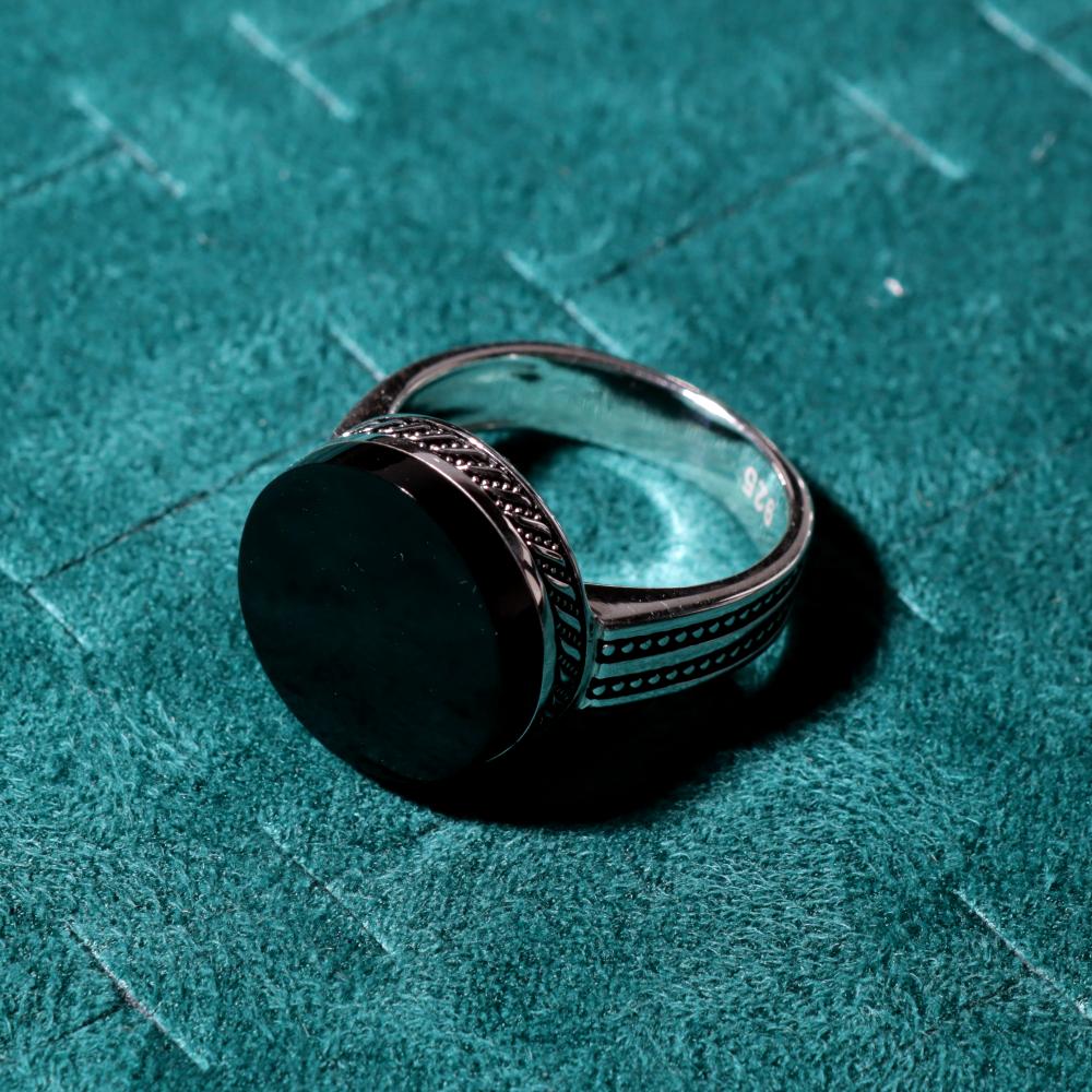 خاتم ملكي دائري مخالب فضة عيار 925 - بلون اسود