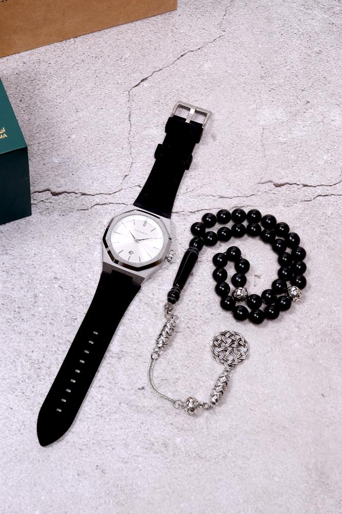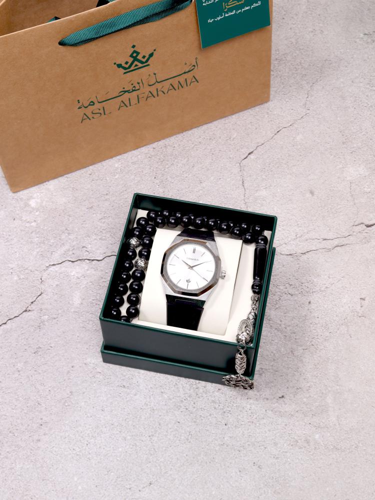 طقم ساعة رجالية أنيق مع مسباح فاخر – لأنك تستحق الأفضل.