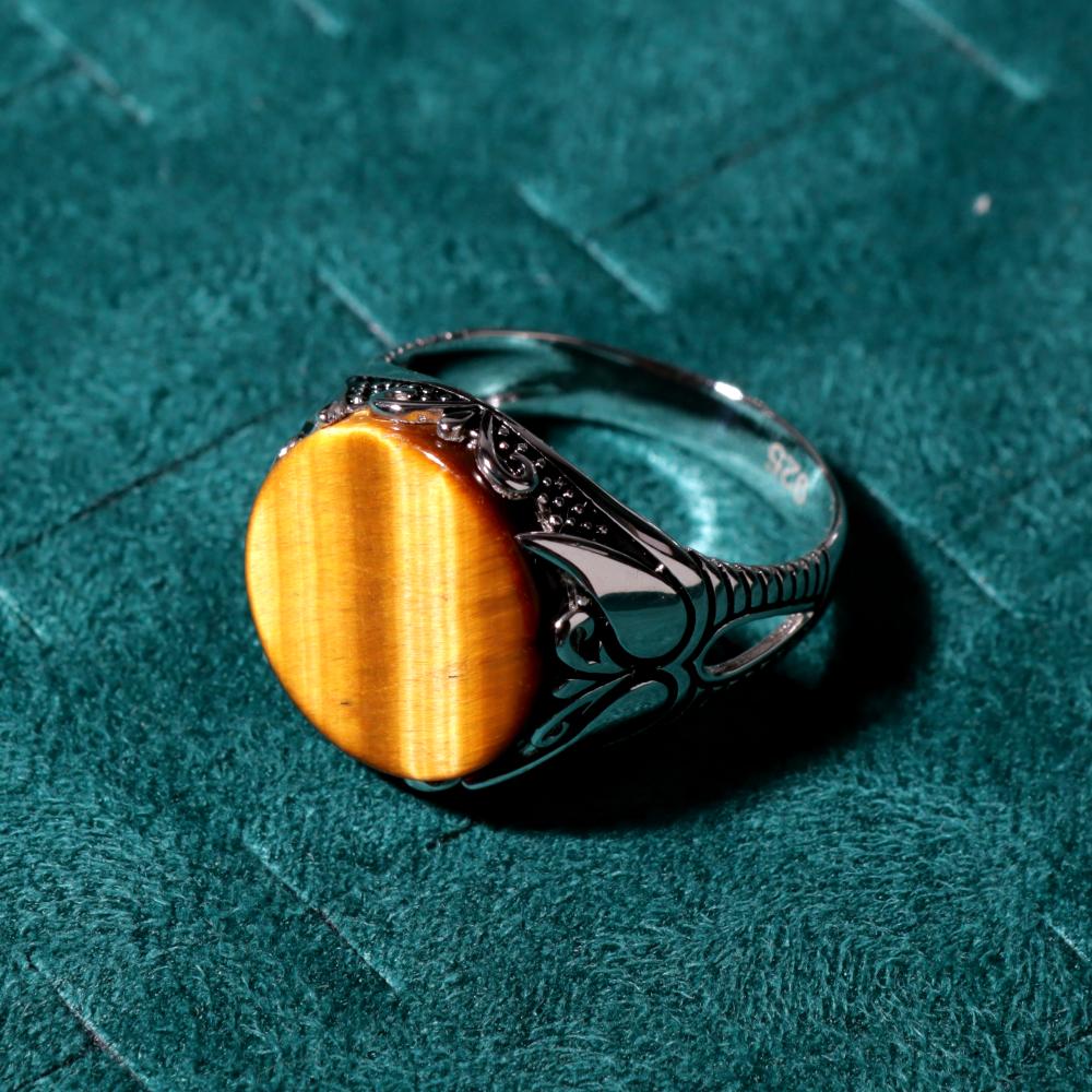 خاتم عثماني مخالب فضة عيار 925 - بلون عين النمر