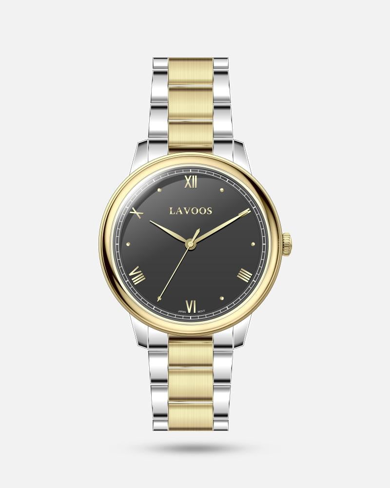 ساعة رجالية أنيقة من الستانليس ستيل (ذهبى فضي/أسود) – هدية فاخرة تدوم طويلاً