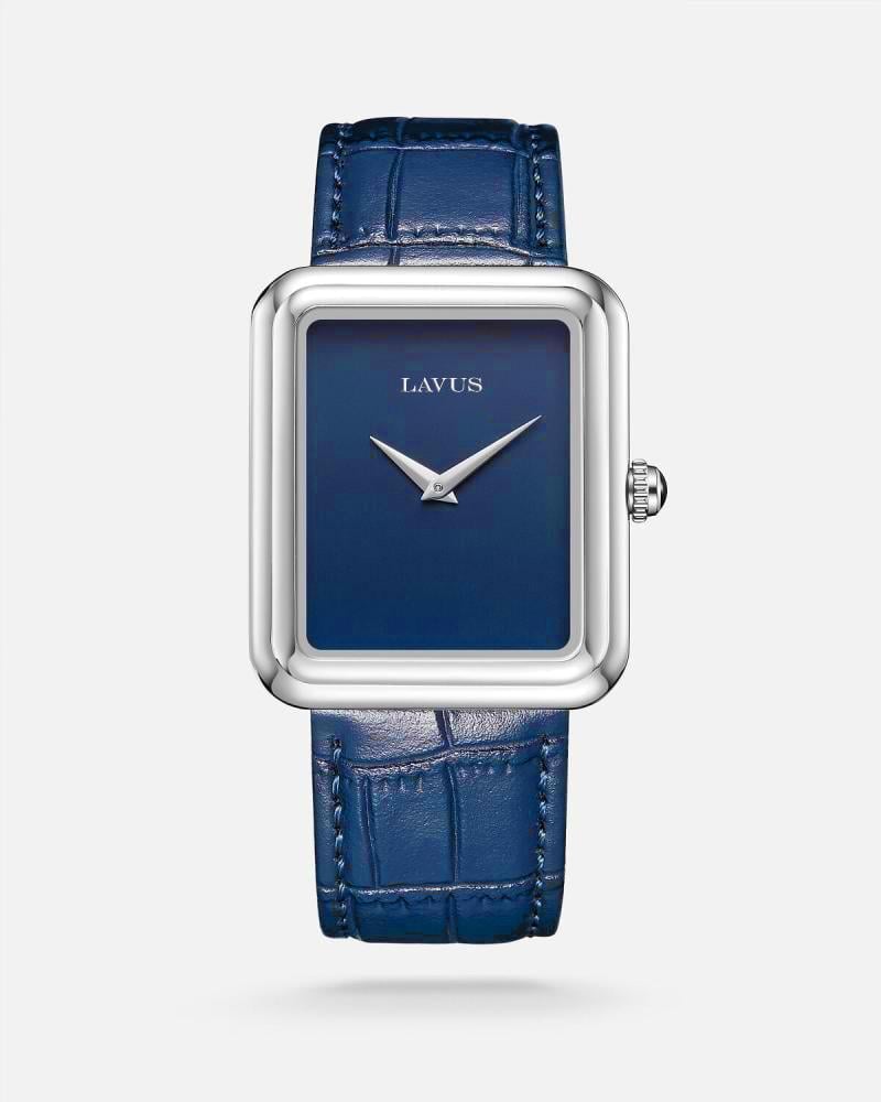 - ساعة بميناء بشكل مستطيل باللون الأزرق