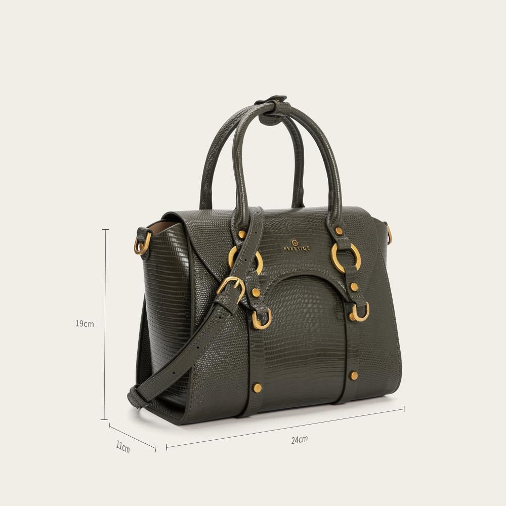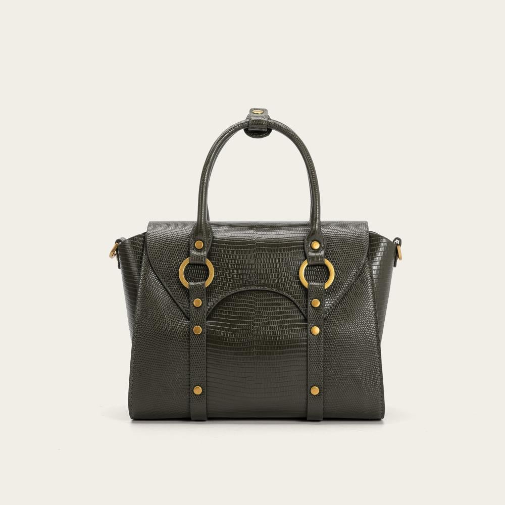 - شنطة نسائية من الجلد باللون الأخضر الداكن