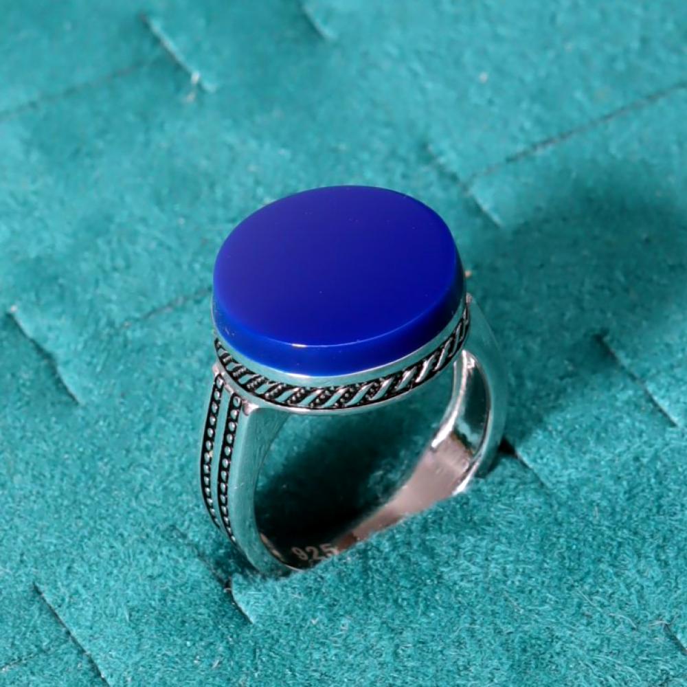 خاتم ملكي دائري مخالب فضة عيار 925 - بلون ازرق