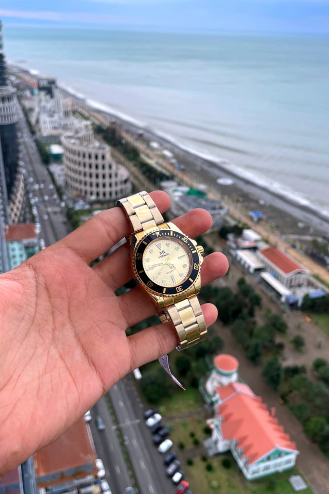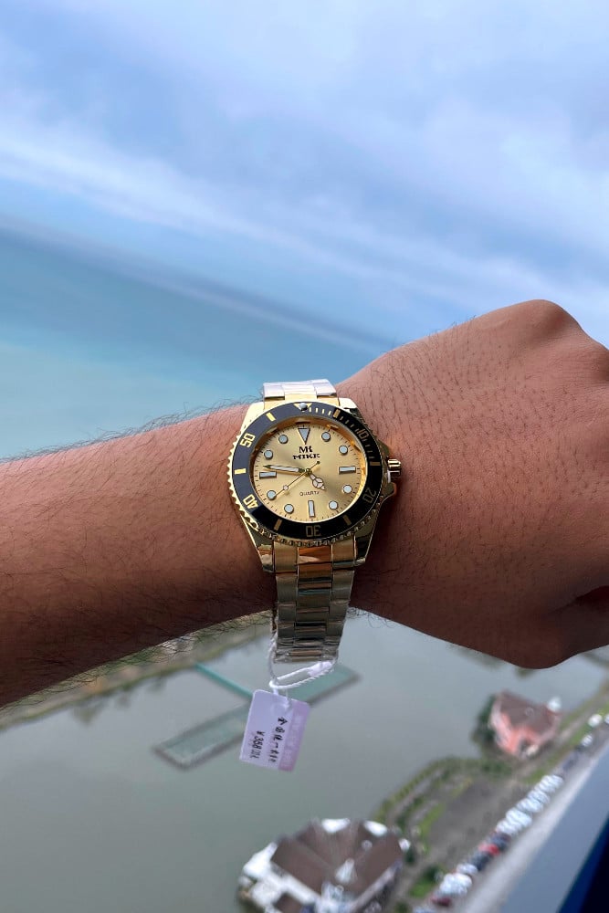 ساعات للرجال -ساعة سامرينا باللون الذهبي الكامل مصممة من أجود المواد وبأحدث التقنيات في عالم الساعات، وتتميز بتصميم فريد يناسب جميع الأذواق. تتضمن الساعة واجهة زجاجية مقواة تتيح للرجل رؤية الوقت بدون عناء، كما تحتوي على ميزات إضافية مثل إمكانية تحديد المنبه وعرض توقيت عالمي.