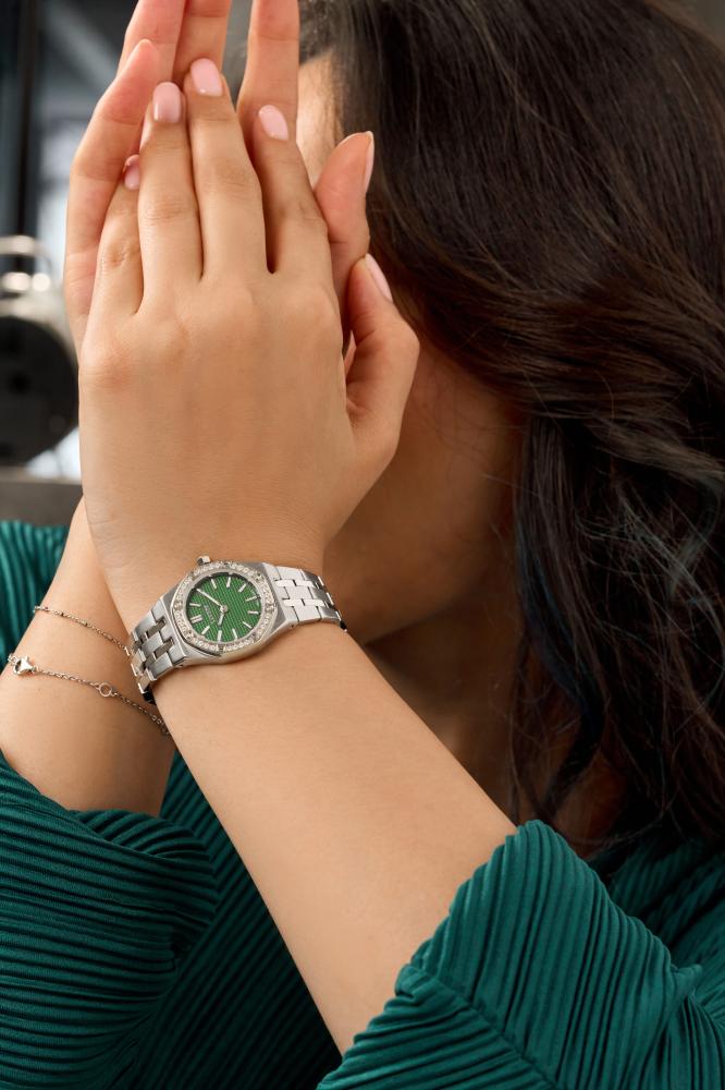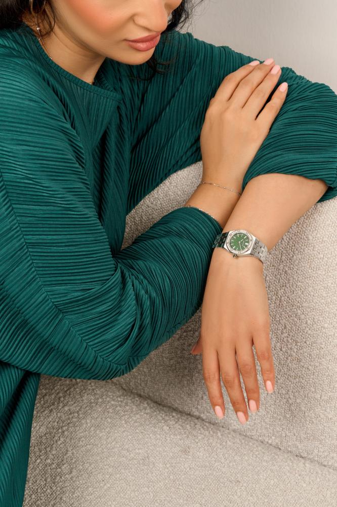 🎁 ساعة لافوس النسائية الفاخرة (فضي/ذهبي مع ميناء أخضر ساحر) 🎁