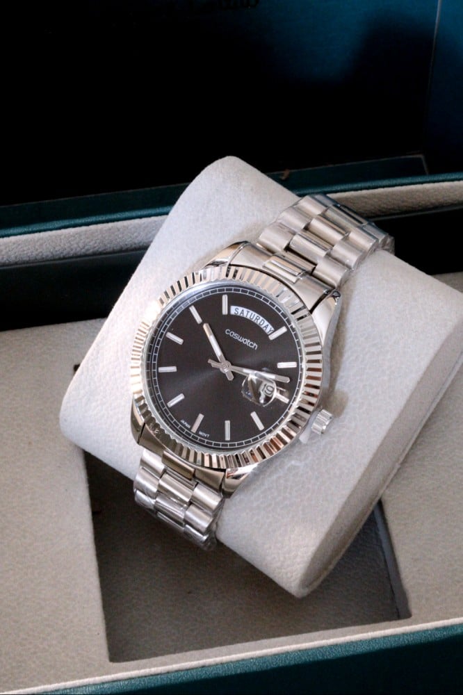 • نوع المنتج : ساعة رجالي ستيل DAY DATE باللون الفضي
