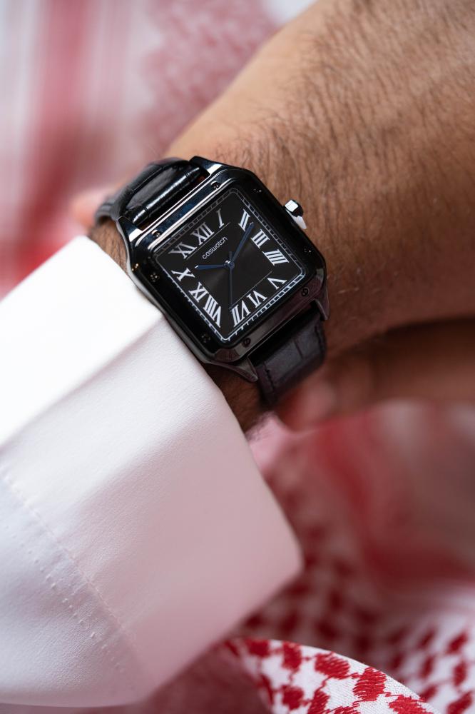 • تتميز ساعة رجالية جلد شبيهة كارتييه بتصميمها الأنيق والجذاب، وهي مصنوعة بجودة عالية وبخبرة حرفية مميزة في صناعة الساعات.