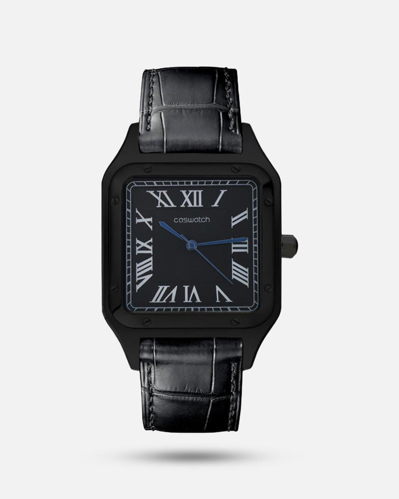 • يتميز تصميم الساعة بالخطوط النقية والأشكال الدقيقة والنسب الممتازة والتفاصيل الثمينة، وهي تتألق في اللون الأسود الأنيق.