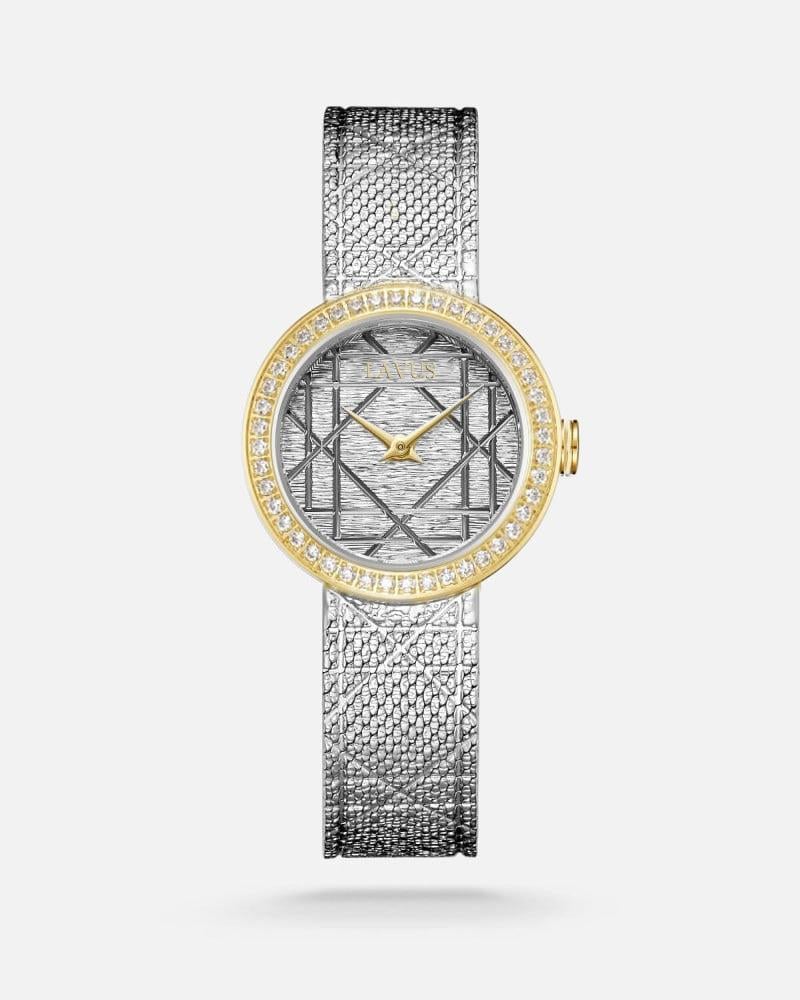 - ساعة بميناء يتزين بخطوط هندسية بلون فضي